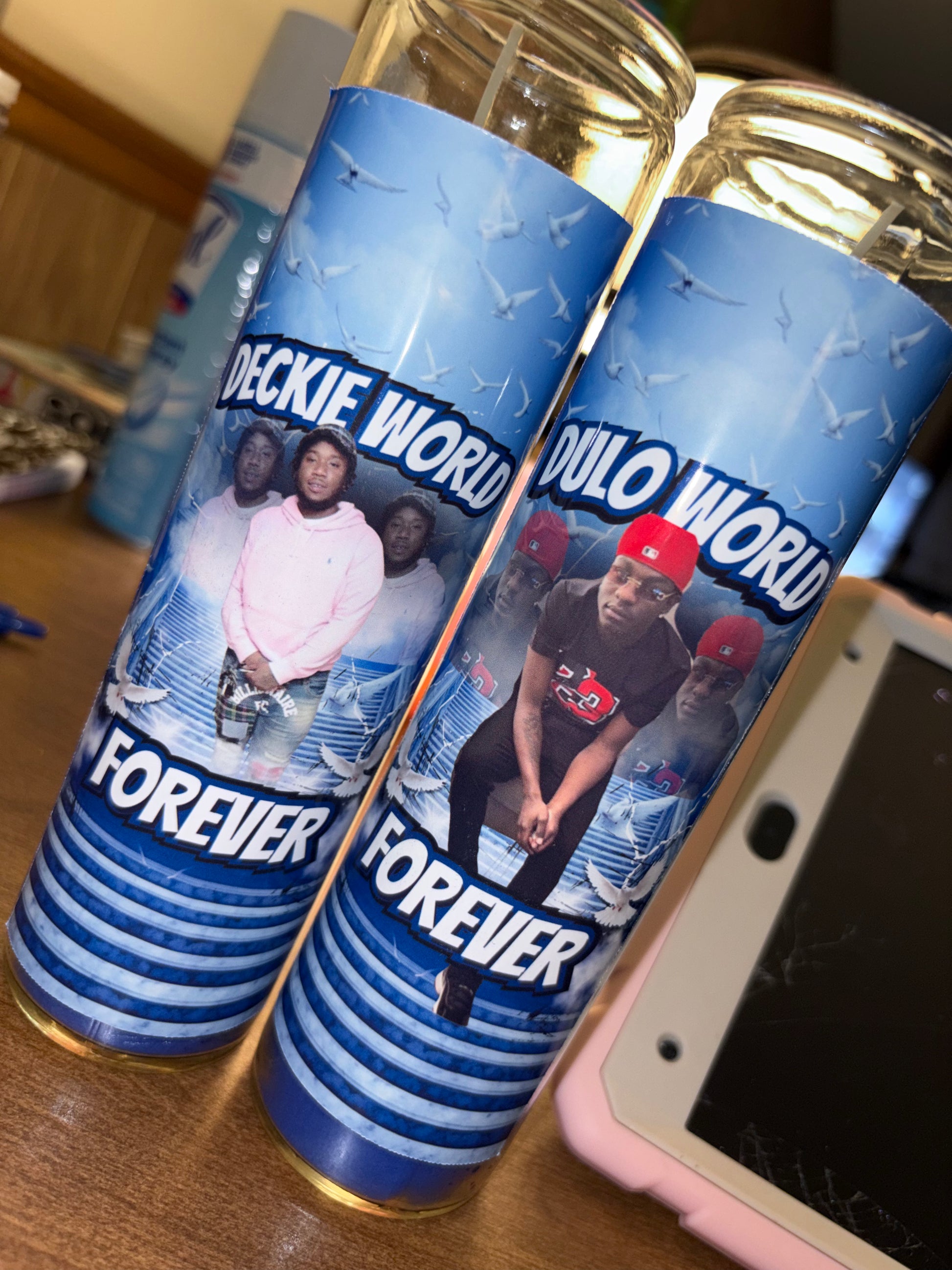 Custom candles crafted to create the perfect mood for any occasion. Ideal for birthdays, weddings, memorials, self-care, gifts, and special events. Personalized with names, messages, photos, or designs, and made with quality materials for a long-lasting, beautiful burn. SINGLE candles is $5 under 3 count.