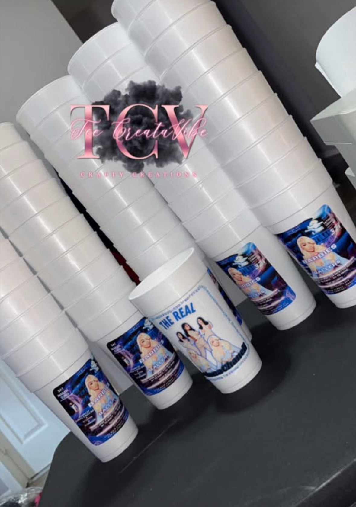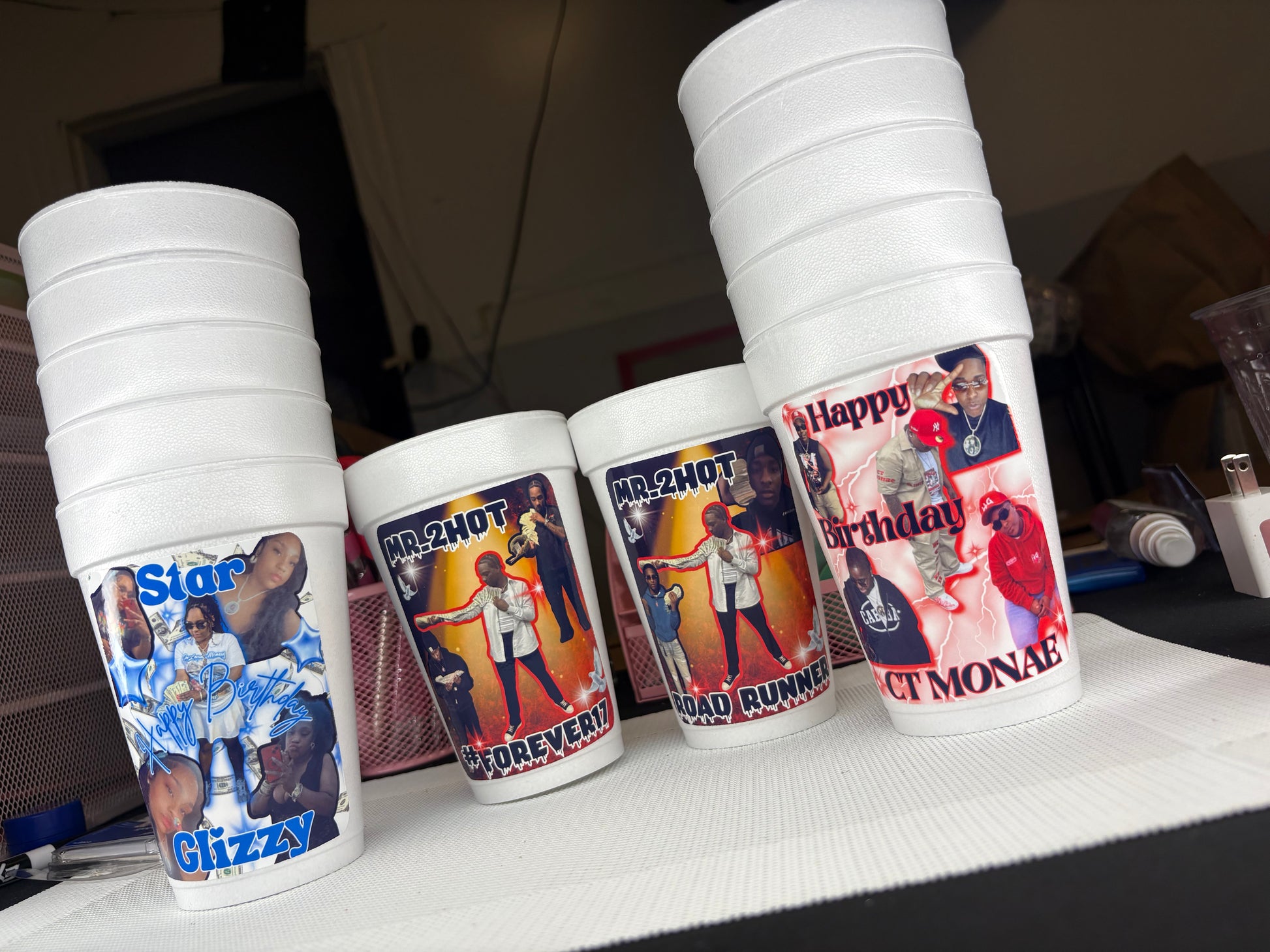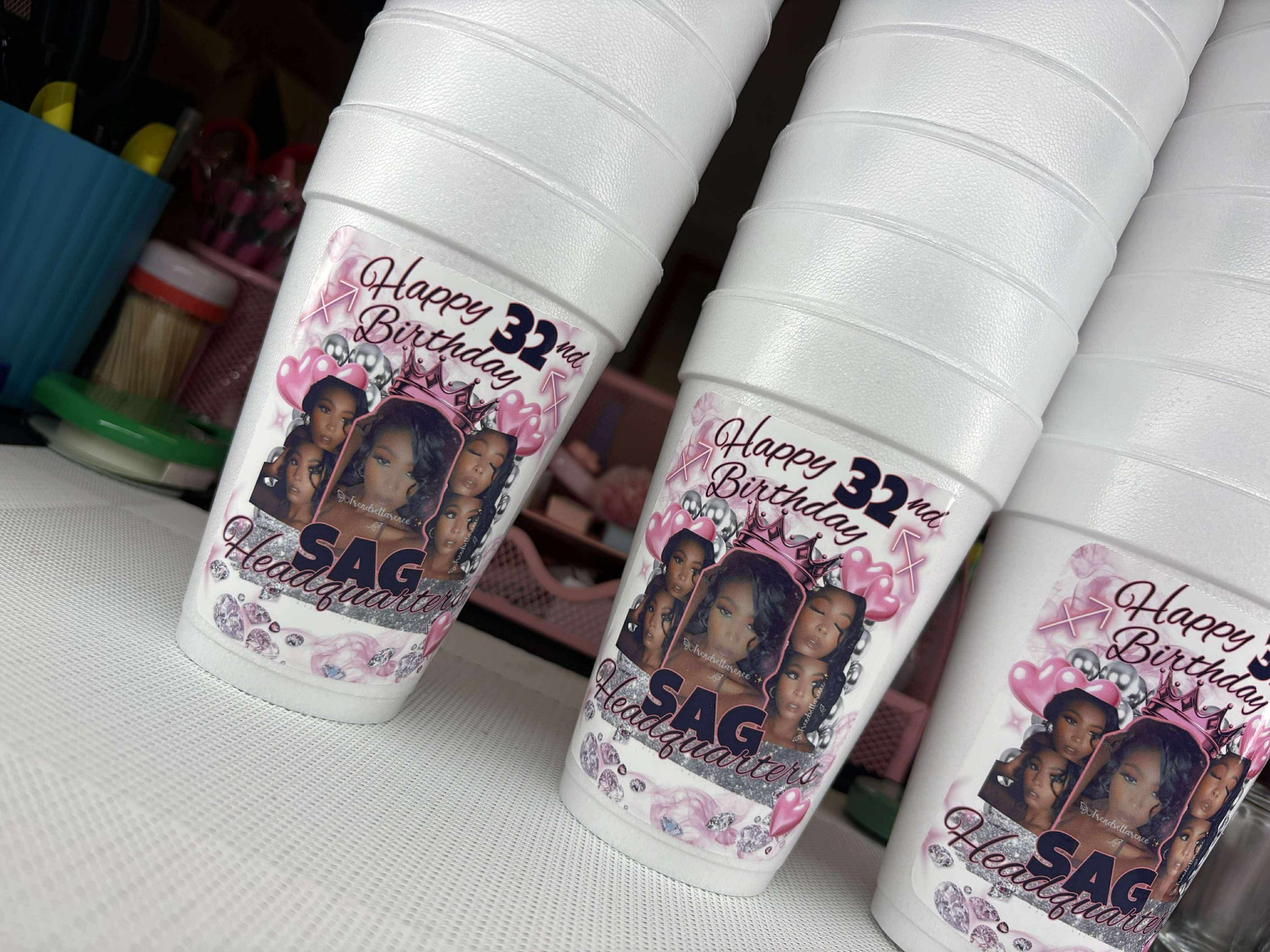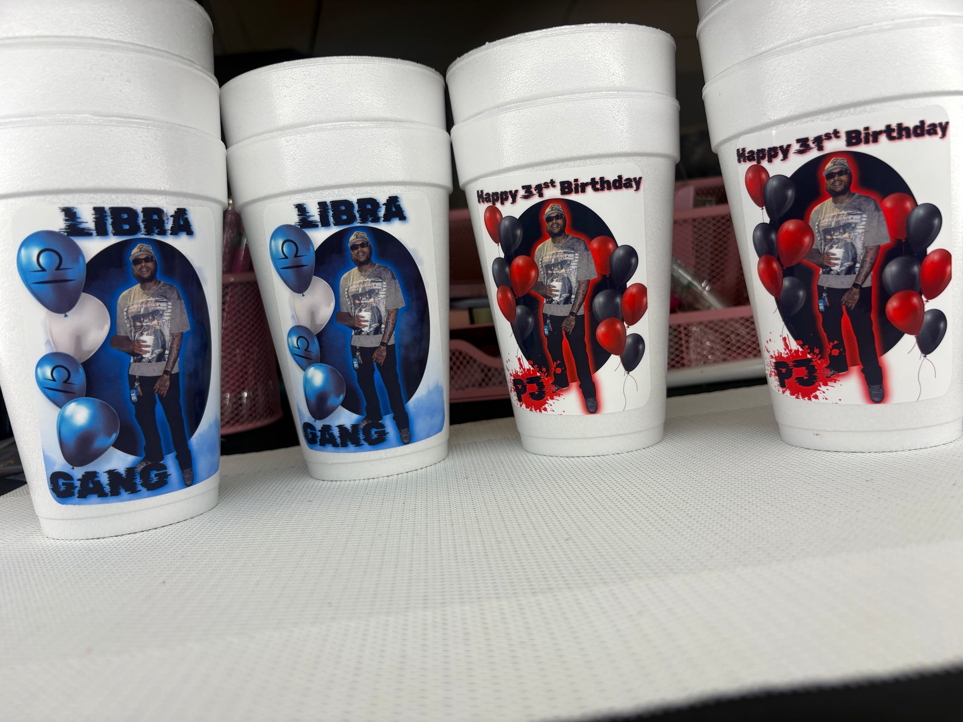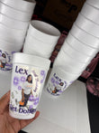 Bring the party to life with custom foam cups! Great for birthdays, weddings, baby showers, family reunions, and more. Keeps drinks cold longer while adding a personal touch your guests will love. Single foam cup is $4 under 10 count.